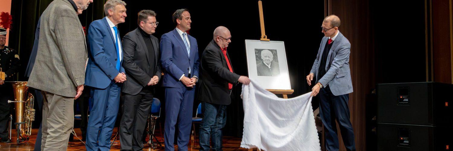 Zum Gedenken enthüllten die Anwesenden ein Bild von Albrecht Herold, das zukünftig in einer Galerie im Rathaus hängen wird.