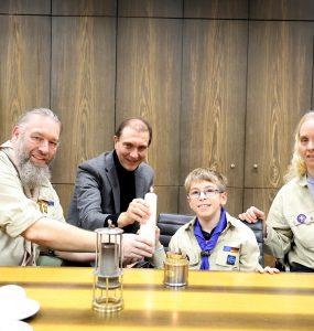 Die Rohrbacher Pfadfinder überbrachten in dieser Woche das Friedenslicht aus Bethlehem im St. Ingberter Rathaus. Felix Unfried, Michael Staut und Silke Waldung von der DPSG – Stamm Rohrbach Saar übergaben, gut...
