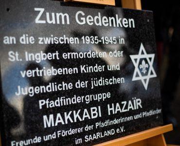 Allgemein Gedenktafel für St. Ingberter Gruppe des jüdischen Pfadfinderbundes Makkai Hazair Frederik Hartmann