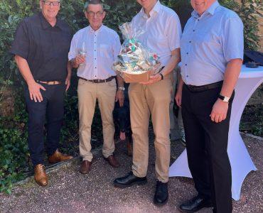 Allgemein Oberbürgermeister Dr. Ulli Meyer und Beigeordneter Markus Schmitt gratulieren Dr. Schlax Consulting GmbH zum 25-jährigen Jubiläum Frederik Hartmann